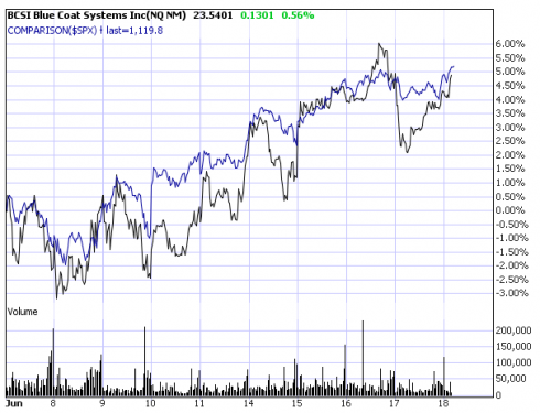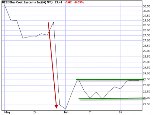 Every once in a while, when using our covered call writing strategy a stock will gap up or down. A gap is a break between prices on a chart that occurs when the price of a stock makes a sharp move up or down with no trading occurring in between. Gaps can be created by factors such as regular buying or selling pressure, earnings announcements, and changes in an analyst’s outlook or any other type of news release. Here is a chart of BCSI which gapped down after an earnings report disappointed: