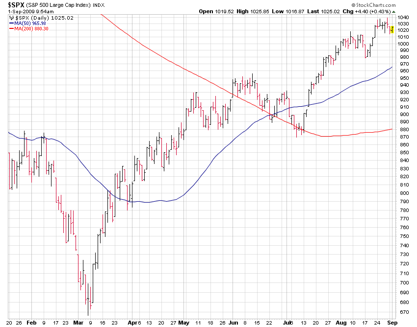 According to S&P Equity Research, the S&P 500 returns 8.2% per year. Twelve months after a rate hike, the average declines to 6.2% while twelve months after a rate cut, the average increases to 15.5%. This folks is why we watch the Fed and the moves and comments it makes in regards to interest rates. For current data on the fed funds target rate use the following free link: http://www.newyorkfed.org/markets/omo/dmm/fedfundsdata.cfm   Last Week’s Economic News: This weeks economic reports still seems to support the case for the start of economic expansion. The manufacturing-sector and service-sector activity as measured by the Institute for Supply management (ISM) both rose in August. Although the unemployment rate rose to to 9.7%, the highest level since 1983, the loss of jobs is slowing. Minutes from the mid-August Fed meeting note that the nations central bank anticipates that the recession will end before the end of the year. It also stated that “inflation will remain subdued for some time”. For the week, the S&P 500 dropped 1.2% for a year-to-date return of 14.5% Video now playing on the homepage: