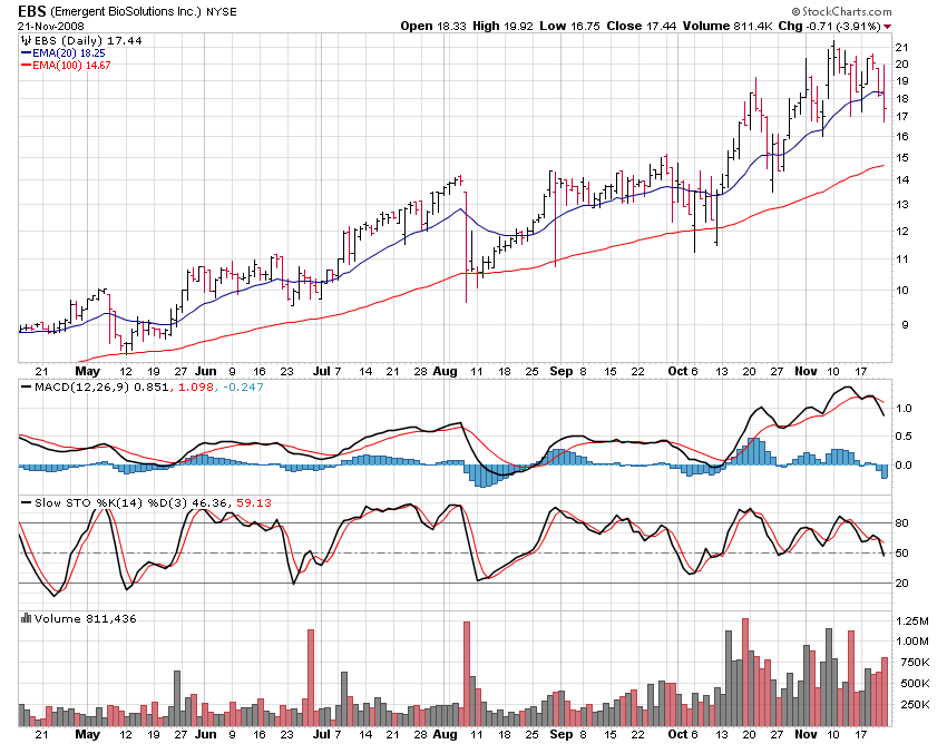 The first two are biotechs, the next two are retailers…but…they are a special class of retailers that are doing well in this economy – “dollar stores.” The last stock is also an economy play…they are pawn brokers.